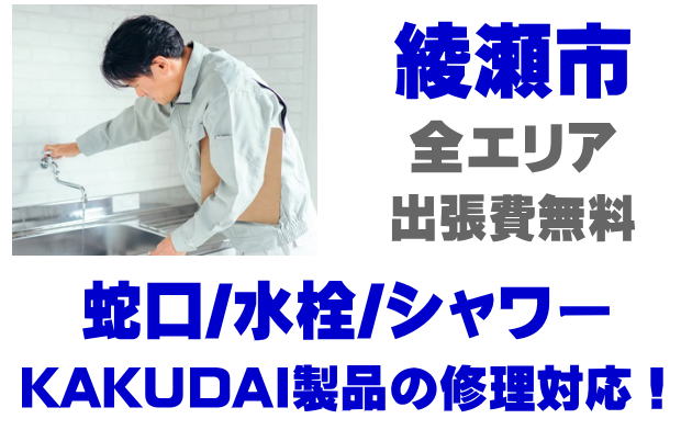 綾瀬市で水栓メーカーKAKUDAIの修理業者をお探しなら当社までお気軽にお問い合わせください。蛇口の水漏れ、シャワーの故障などカクダイ製に関するトラブルなら何でもご相談ください。