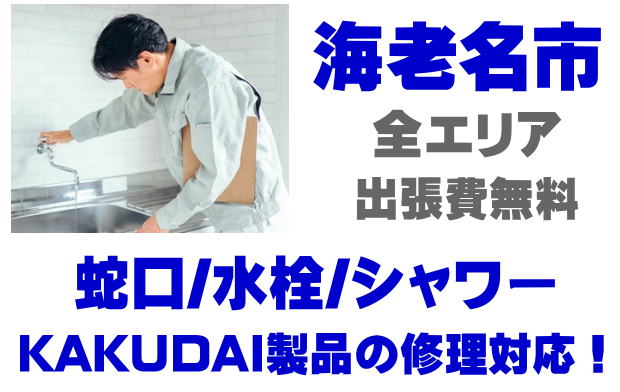 海老名市で水栓メーカーKAKUDAIの修理業者をお探しなら当社までお気軽にお問い合わせください。蛇口の水漏れ、シャワーの故障などカクダイ製に関するトラブルなら何でもご相談ください。