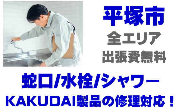 平塚市で水栓メーカーKAKUDAIの修理業者をお探しなら当社までお気軽にお問い合わせください。蛇口の水漏れ、シャワーの故障などカクダイ製に関するトラブルなら何でもご相談ください。