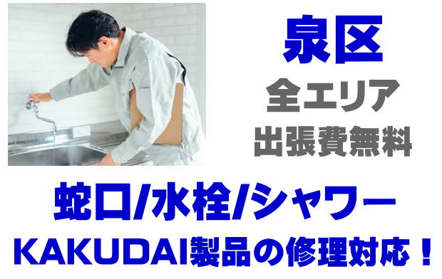 泉区で水栓メーカーKAKUDAIの修理業者をお探しなら当社までお気軽にお問い合わせください。蛇口の水漏れ、シャワーの故障などカクダイ製に関するトラブルなら何でもご相談ください。