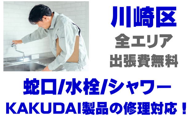 川崎区で水栓メーカーKAKUDAIの修理業者をお探しなら当社までお気軽にお問い合わせください。蛇口の水漏れ、シャワーの故障などカクダイ製に関するトラブルなら何でもご相談ください。